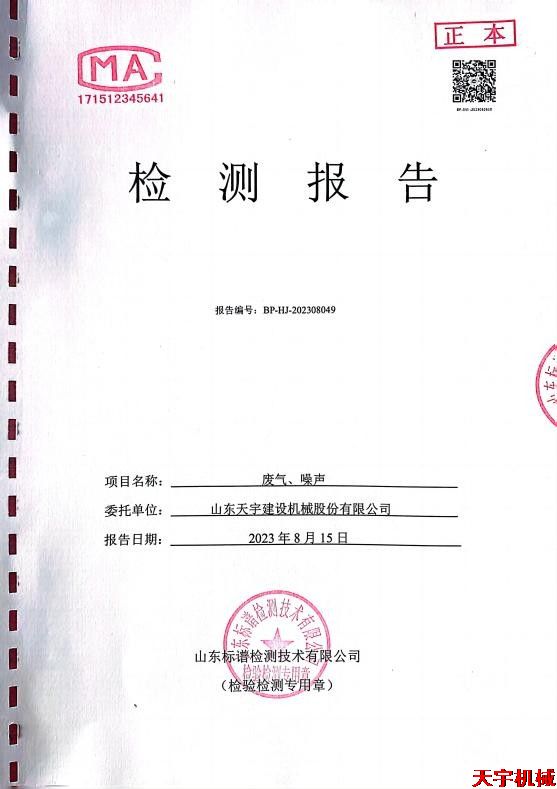 山東天宇建設(shè)機械股份有限公司廢氣、噪聲檢測報告公示