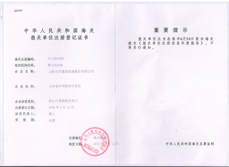 Shandong Tianyu Construction Machinery CO.,LTD.